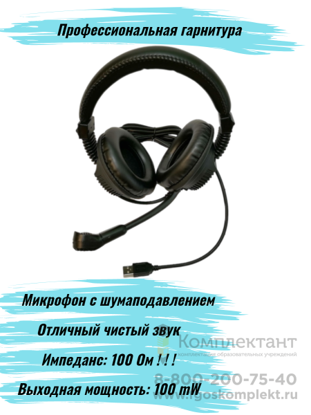Наушники с микрофоном используют в качестве лингафонной гарнитуры, которая предназначена для использования с любыми компьютерами, моноблоками и ноутбуками. Гарнитура качественно изготовлена и имеет очень хороший звук. Для оголовья и амбушюров (подушечек наушников) используется качественная кожа, которую трудно разорвать руками или другими предметами. Мягкие амбушюры и регулировка размера оголовья и положения микрофона позволяют удобно пользоваться гарнитурами учащимся разного возраста.