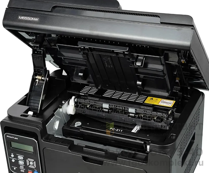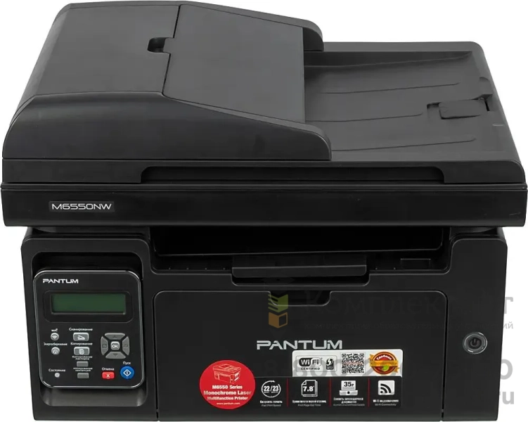 PANTUM M6550NW прост в эксплуатации, картридж можно как менять, так и перезаправлять. Вся информация о состоянии устройства выводится на небольшой экран. Модель поддерживает технологии Air Print и Mopria, благодаря этому Apple и Android девайсы подключаются по Wi-Fi и могут присылать файлы на печать. При помощи разъема RJ -45 аппарат выходит в сеть и работает как сервер, на который отправляют документы с любого компьютера в офисе.
