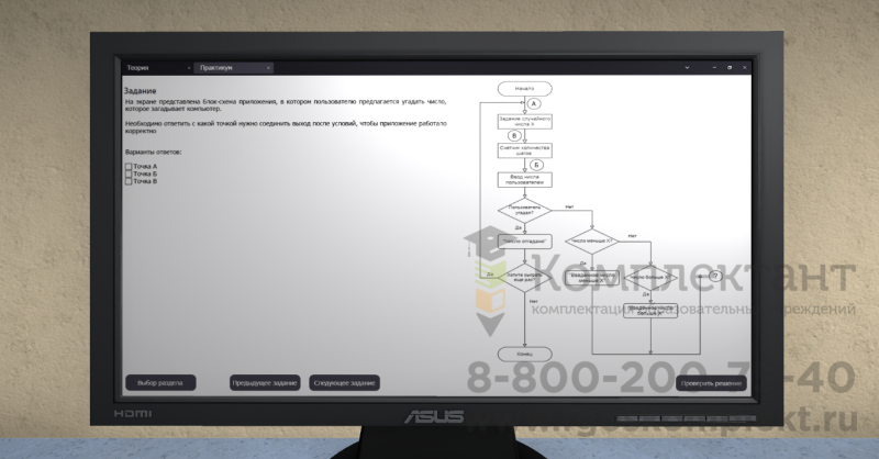 Тренажер предоставляет краткую теорию по основным направлениям программной инженерии, возможность формирования технического задания на основе требований заказчика, моделировать виртуальную программу, модернизировать уже существующие модули виртуальных программ и отдельные фрагменты кода, создавать концепции приложения на основе составления блок схем, демонстрировать процессы командной разработки, тестировать отдельные модули программы.