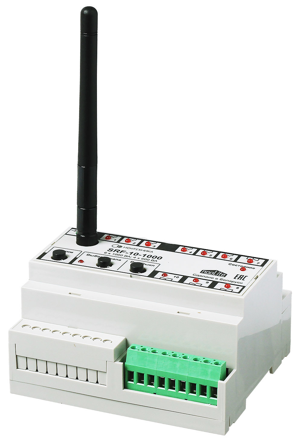 Если вы хотите автоматизировать всё освещение и электроприборы в вашем доме, то nooLite SRF-10-1000 — настоящий мастер своего дела. Блок по-взрослому крепится в электрощитке на DIN-рейку и может коммутировать до 10 каналов.