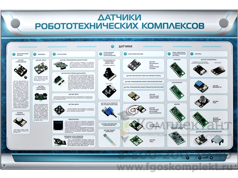 Электрифицированный стенд предназначен для изучения датчиков, применяемых в робототехнике.