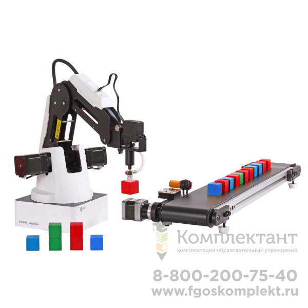 Конвейерная лента является дополнительным модулем для роботизированного манипулятора DOBOT Magician. Конвейерная лента в сочетании с манипулятором - идеальная основа для создания высокоэффективной моделируемой производственной линии.