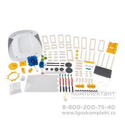 Модуль состоит из набора деталей, для конструирования, моделирования, учебное пособие - 1 шт., 3D Smart Manual - интерактивная система, демонстрирующая пошаговую сборку каждой модели, предложенной в уроке-кейсе, с выводом на интерактивную доску, панель, планшет или смартфон, пластиковый контейнер с фиксируемой крышкой и ручкой.