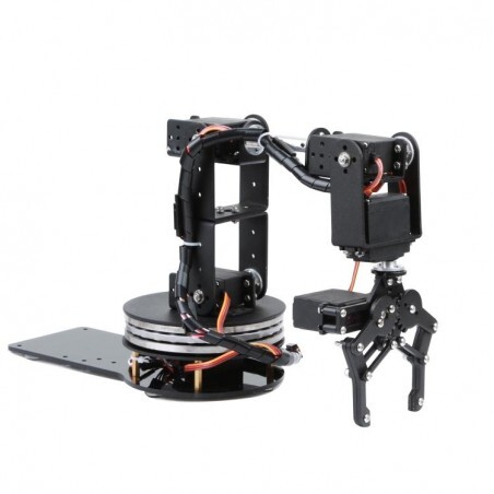 Шесть осей: вперёд - назад, вверх - вниз, влево - вправо, повороты вокруг каждой из трёх взаимно перпендикулярных осей. Сервоприводы цифровой и аналоговый. Максимальный угол вращения - 180°, скорость реакции составляет - 0,14 с. Крутящий момент цифрового сервопривода 15,3 кг/см, 20 кг/см, аналогового - 11 кг/см. Рабочая «мертвая зона» - 3-5 (микросекунд). Вес - 1,32 кг. Длина манипулятора - 43 см.