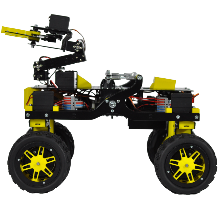 Робототехнический конструктор на базе четырехколесного шасси. На робота установлено навесное оборудование - трехзвенный манипулятор, благодаря которому появляется возможность захватывать объекты различной формы из труднодоступных мест. Робототехнический конструктор позволяет изучать основы программирования автономных мобильных роботов.