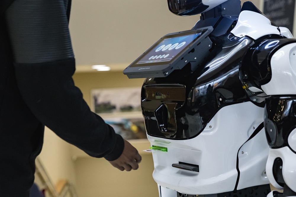 • Робот умеет общаться с людьми, может распознавать лица и речь отдельного человека. Ему можно задавать вопросы. Главное, он работает автономно, ему не требуется помощь со стороны человека;