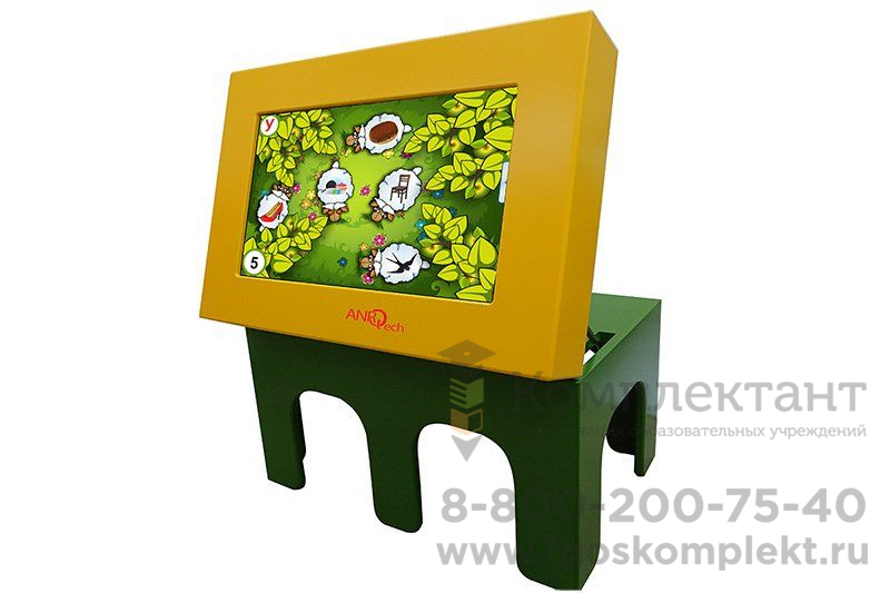 Интерактивный стол с регулируемым уровнем наклона столешницы «Емеля» сочетает в себе достоинства интерактивного стола и сенсорной доски. Благодаря электрическому приводу, можно без труда изменять положение дисплея и использовать столик в качестве доски. Эта особенность не только расширяет функциональность столика “Емеля”, но и делает его удобным для занятий с детьми с особенностями здоровья.