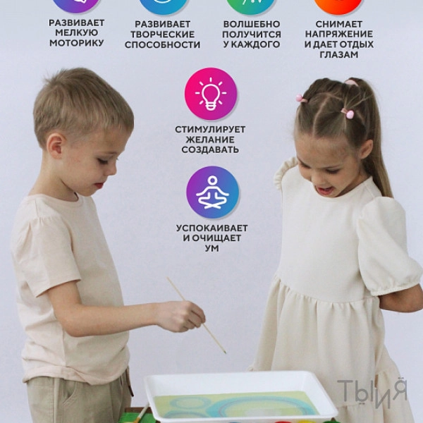 Данное оборудование идеально подходит для занятий аква-анимацией и развитии творческих способностей у ребенка. Уникальная техника рисования на воде "Эбру" способствует снятию психо-эмоционального напряжения. Готовую студию для рисования на воде можно использовать психологам как для работы с детьми, так и для работы со взрослыми (педагоги, родители).