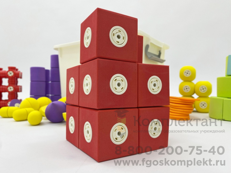 Детали конструктора окрашены в приятные однотонные цвета, со звуковым эффектом погремушки. Каждая из деталей имеет от 1 до 9 вариантов магнитной стыковки, что практически не ограничивает ребенка в конструировании. Простые детали отлично подходят для детей младшей группы ДОУ, детей с ОВЗ и РАС. Более сложные по форме и креплениям детали предназначены для детей средней и старшей группы.