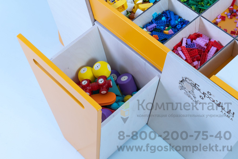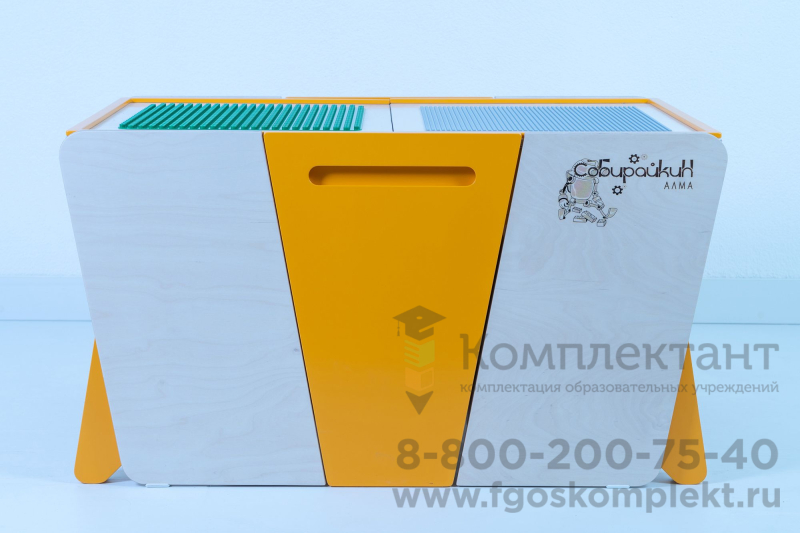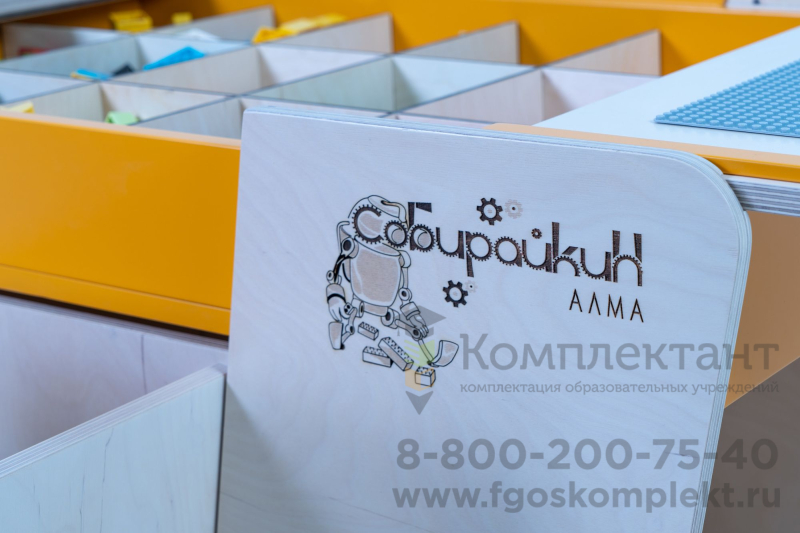 Предусмотрены выдвижные боковые ящики, со всеми любимым магнитным конструктором МАККИ. Методические пособие и карточки с заданиями входят в комплект Собирайкина.