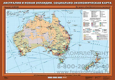 Учебн. карта "Австралия и Новая Зеландия. Социально-экономическая карта" 70х100